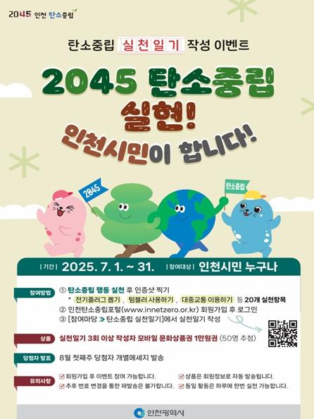 인천시,‘탄소중립 실천일기 작성 이벤트’개최 … 시민 참여 유도