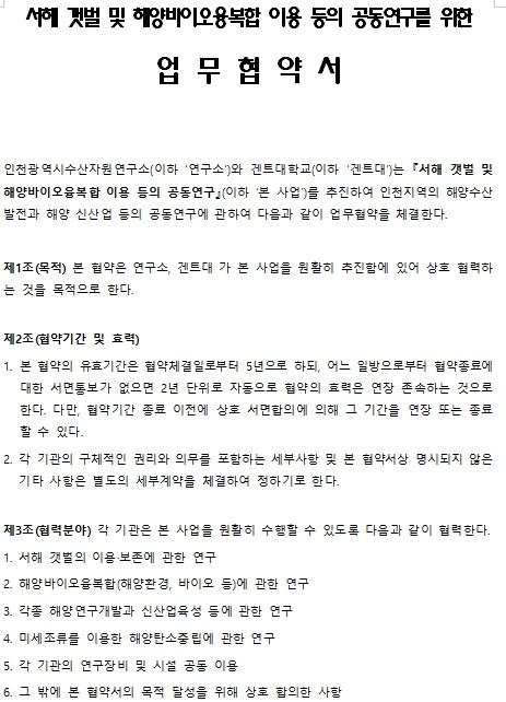 인천시, 겐트대와 손잡고 해양 탄소중립·신산업 연구 추진한다