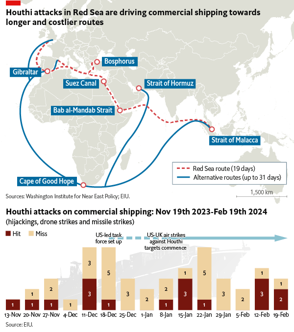 이스라엘-이란 갈등과 예멘 후티 반군의 홍해 상선 공격으로 촉발된 ‘레드씨 리스크’가 글로벌 해상 물류망을 뒤흔들고 있다.홍해와 수에즈 운하, 호르무즈 해협을 지나는 주요 해상 항로가 지정학적 긴장…