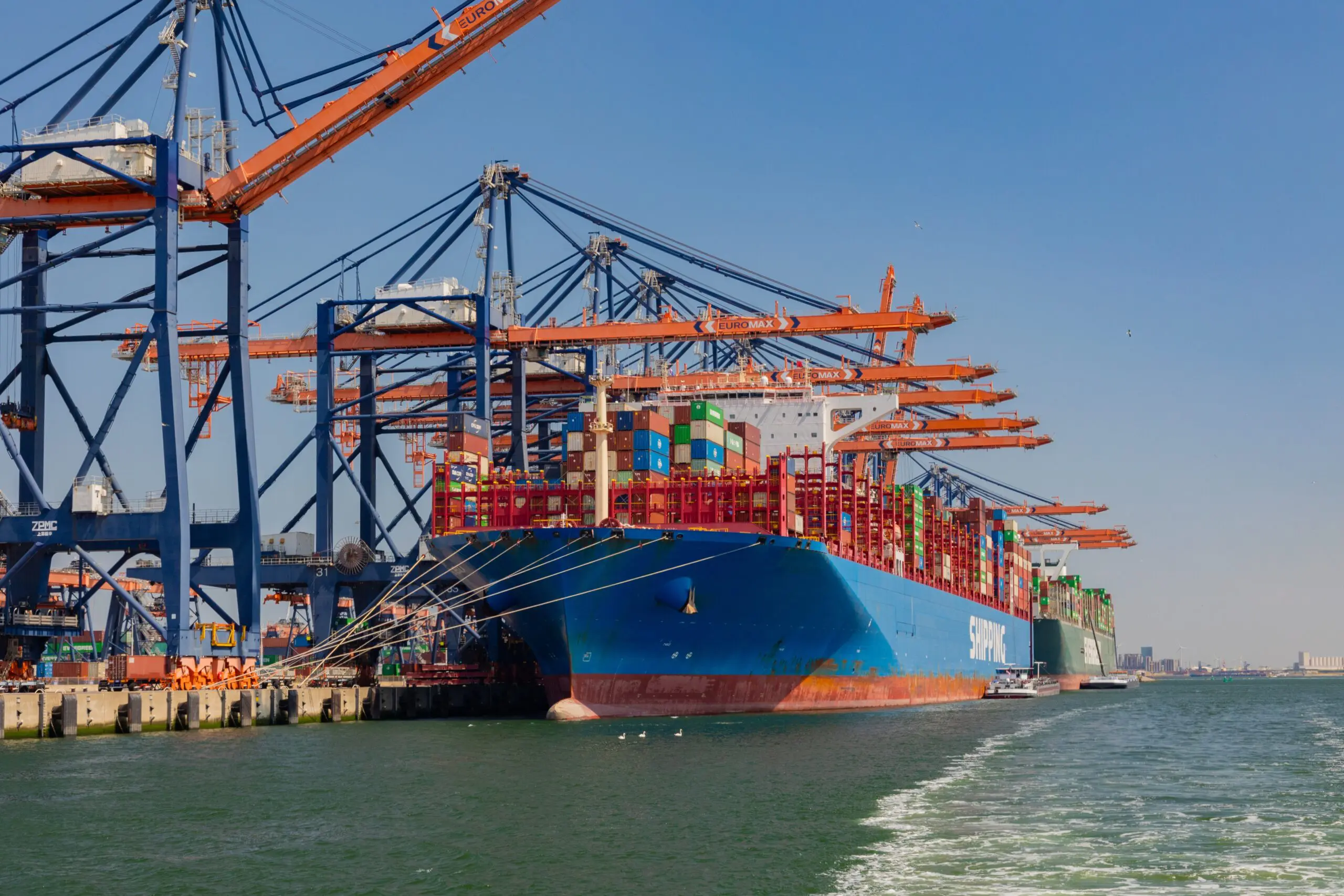 컨테이너선 하역 작업 중인 항만 전경. 글로벌 해상운임 하락세와 함께 주요 항만의 물동량 흐름도 변화하고 있다. (출처: MOL Logistics Europe)2025년 8월 말 기준 전 세계 해상운송 시장에서 운임 하락세…