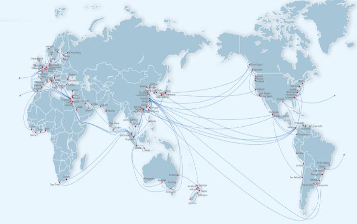 COSCO의 글로벌 항만 네트워크: 세계 주요 항만과의 해상 연결망을 보여주는 지도 출처: COSCO 공식 웹사이트중국 국영 해운 기업 COSCO가 미·중 무역 갈등 심화로 해외 투자 전략에 변화를 꾀하고 있다. …