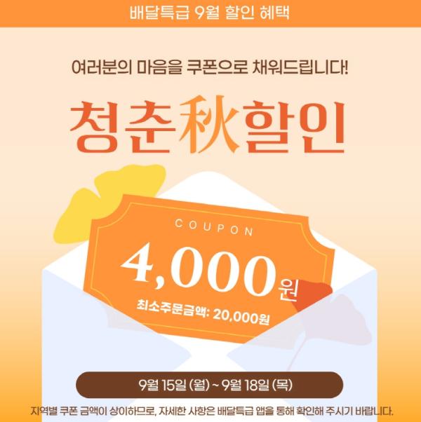 경기도와 경기도주식회사가 운영하는 경기도 공공배달앱 배달특급이 오는 15일 월요일부터 18일 목요일까지 ‘청춘할인’ 깜짝 소비자 할인 이벤트를 진행한다.이번 할인 이벤트 대상 지역은 가평군과 여주