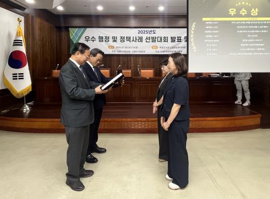 꿈이 모이는 도시, 미래를 그리는 강남구가 지난 7월 9일 국회도서관 소회의실에서 열린 '2025년 우수행정 및 정책사례 선발대회'에서 ‘로봇이 미래다- 미래 노동력 공백을 대체할 로봇산업 육성 및 지원 정책 추진’으로 기초자치단체 부문 우수상을 수상했다.