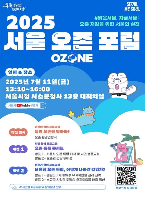 보이지 않아 더 위험한 오존에 대해 본격적인 관리에 나선 서울시가 고농도 오존의 건강·환경상 위험과 사회적 대응 필요성에 대해 널리 알리고 서울시 오존 관리 정책의 효과적 실행 방안을 모색하기 위한 '2025 서울 오존 포럼'을 개최한다.