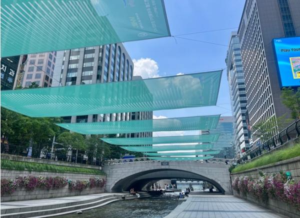 우선, 공단은 7월 11일부터 청계천 시점부(모전교~광통교, 약 50m 구간)에 대형 디자인 그늘막을 설치해 한낮 뜨거운 햇볕 속에 시민들에게 쾌적한 쉼터를 제공한다. 서울시설공단과 폭스바겐그룹 우리재단(청계아띠기업)이 협업해 추진한 이번 그늘막은 9월까지 운영될 예정이다. 특히 이 그늘막에 사용된 원단은 운영 종료 후 가방, 파우치 등 업사이클링 제품으로 새활용될 예정이다. 공단은 SNS 이벤트를 통해 해당 제품에 대한 시민 나눔 활동도 진행한다.