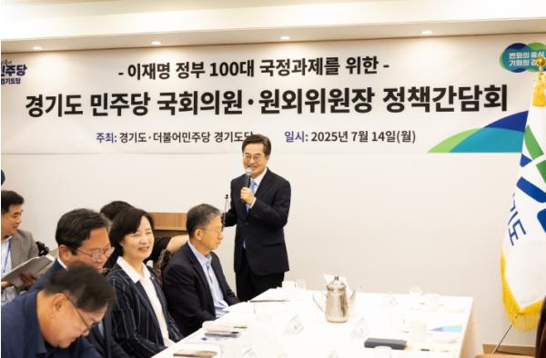 김 지사는 “(새 정부 출범후)경기도는 우리 이재명 국민주권정부 제1의 국정파트너로서 많은 부분에 있어 함께 힘을 모으기 위해 애를 써왔다. 대선과정에서도 경기도가 해왔던 정책과 경기도가 내세웠던 것들이 이재명 대통령의 공약에 많이 반영이 되고, 최근에는 국정기획위원회에도 반영되고 있어 대단히 기쁘다”면서 “성공한 정부를 만들기 위해서 여기 계신 의원님들과 함께 (계속) 힘을 모으겠다”고 다짐했다.