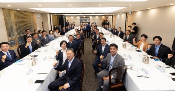 김동연 경기도지사와 민주당 경기도 국회의원+원외위원장들이 오늘 ‘원팀’이 되어 정책간담회를 했다고 밝혔다.
