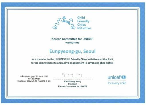 김미경 은평구청장은 “이번 인증은 구민 모두가 함께 이뤄낸 값진 성과”라며, “앞으로도 아동이 행복한 도시는 결국 모든 구성원이 살기 좋은 도시라는 믿음으로 아동 중심의 정책을 꾸준히 이어가겠다”고 말했다.