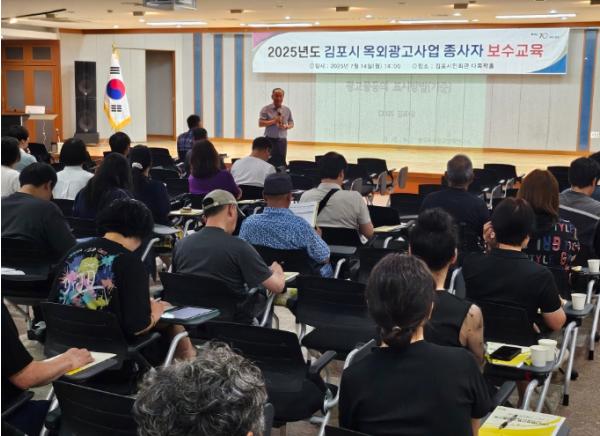 김포시가 지난 14일 김포시민회관에서 관내 옥외광고사업종사자를 대상으로 2025년 옥외광고물 관련 실무 및 소양 교육을 실시했다.