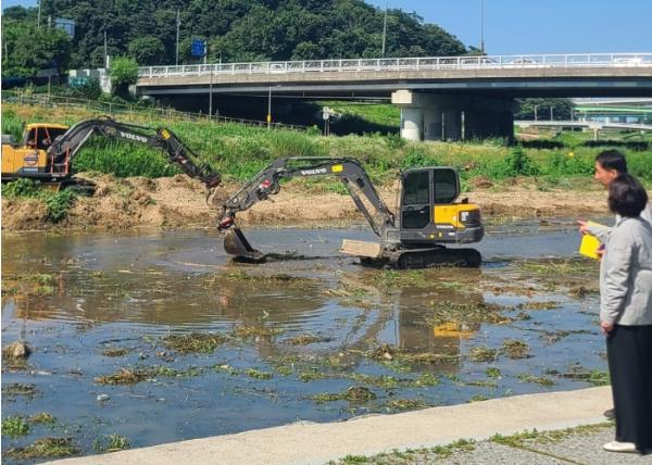 시는 올 여름철 집중호우와 태풍으로 인한 하천 범람 위험을 예방하기 위해 선제 조치로 용암천 준설을 시행하고 있다.