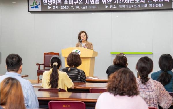 박희영 서울 용산구청장은 18일 구청에서 열린 ‘민생회복 소비쿠폰 지원을 위한 기간제근로자 근무교육’에서, 구민들이 원활하게 혜택을 받을 수 있도록 철저한 업무 수행을 당부했다.