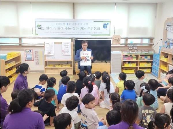 이번 구연동화는 지역사회보장협의체 ‘더 좋은 은평 공모사업’의 세부 사업으로, 김삼동 동화작가가 ‘도깨비 김밥’의 내용을 바탕으로 구연동화를 펼치고 관내 산새소리 어린이집 아동들과 함께 색칠하기 활동을 진행했다.