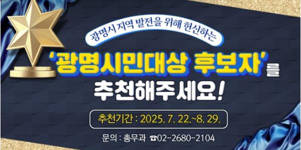 광명시는 오는 8월 29일까지 ‘제37회 광명시민대상’의 주인공을 찾기 위해 후보자를 추천받는다.