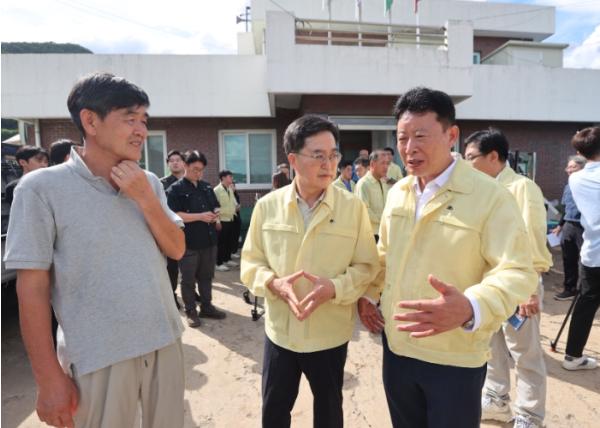 이날 김 지사는 서태원 군수와 함께 피해상황이 심각한 조종면 마장리와 신상리 이재민 임시대피소를 둘러보고, 주민들과 피해 상황을 직접 점검했다. 서 군수는 현장에서 “도로 유실과 주택 붕괴, 산사태 등으로 피해가 광범위하게 발생해 가평군 단독 재정만으로는 신속한 복구가 어렵다”며 “경기도와 중앙정부의 실질적인 지원이 절실하다”고 강조했다.