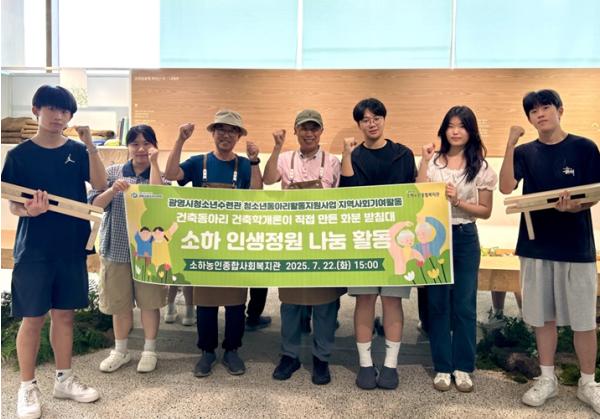 (재)광명시청소년재단 광명시청소년수련관 소속 건축동아리 ‘건축학개론’은 2025년 7월 22일, 지역사회공헌을 목표로 직접 제작한 화분 받침대를 광명시립소하노인종합복지관에 기부했다고 밝혔다.