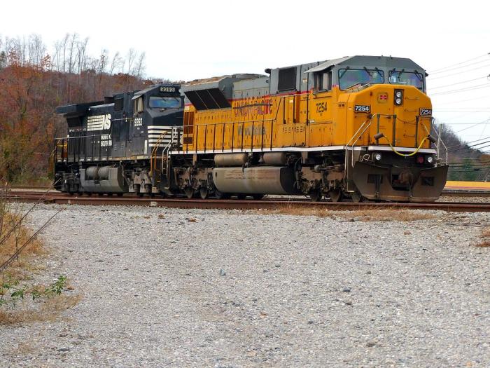| 노퍽 서던(왼쪽)과 유니언 퍼시픽(오른쪽)의 기관차가 병렬로 운행되고 있는 모습. 두 회사의 합병 논의가 본격화되며 미국 전역을 잇는 단일 철도망 형성 가능성에 이목이 집중된다. 사진 출처: Flickr Trainiac / CC BY-NC 2.0 |