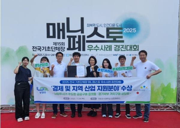남양주시는 24일 국립경국대학교 안동캠퍼스에서 열린 ‘2025년 전국 기초단체장 매니페스토 우수사례 경진대회’에서 경제 및 지역 산업 지원 분야 최우수상을 수상했다.