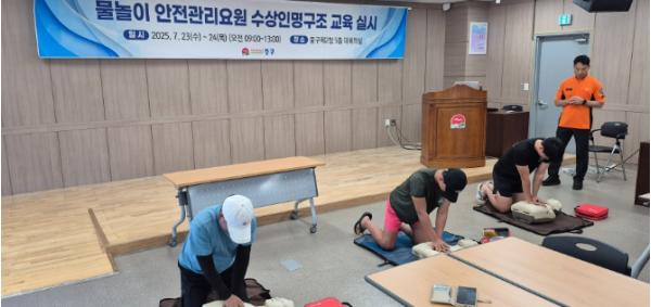 인천시 중구는 본격적인 여름 휴가철을 앞두고 지난 23~24일 양일간 제2청사 대회의실에서 해수욕장 안전관리 요원 22여 명을 대상으로 ‘특별 교육’을 진행했다고 밝혔다.