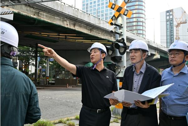 오세훈 서울시장이 28일 오전 8시, 시설물 노후화로 수명을 다한 ‘서소문고가차도’ 현장을 점검했다.