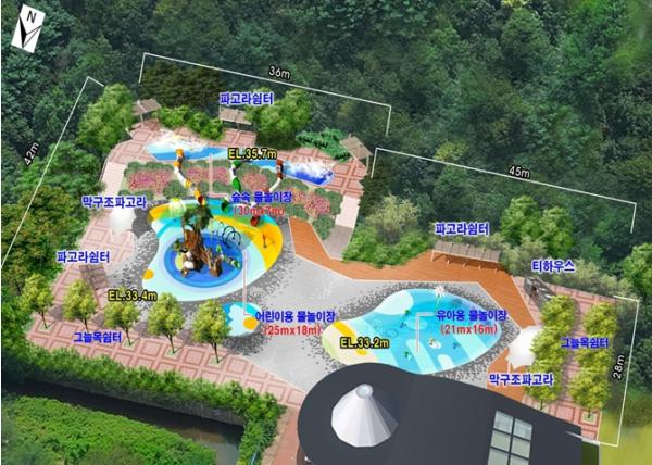 물놀이장은 약 38억 원을 투자해 총면적 3,930㎡ 규모로 조성했으며, 어린이·유아용 물놀이장, 워터슬라이드, 샤워시설, 탈의실, 휴게음식점 등 다양한 편의시설을 갖추고 있다. 수심은 어린이의 안전을 고려해 25㎝를 넘지 않도록 설계했다.