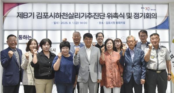 김포시는 지난 8월1일 김포시 하천살리기 추진단 제8기 단원 8명을 위촉했다고 밝혔다. 그리고, 위촉식에 이어 ‘2025년 상반기 운영위원회’에서 박남순 단장을 재선임하고, 김명숙 부단장을 새롭게 선임했다.