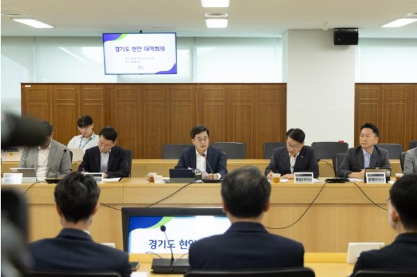 김동연 지사는 5일 경기도청에서 경기도 현안 대책 회의를 열고 이같이 밝혔다. 이날 회의는 지난 1일 대통령 주재 시도지사 간담회에서 김 지사가 이재명 대통령에게 건의한 사안을 도 차원에서 점검하고 속도를 내기 위해 논의하는 자리로, 행정1·2·경제부지사와 실국장, 경기연구원장 등 공공기관 관계자들이 참석했다.