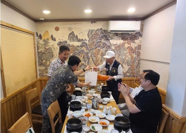 행사는 말복을 맞아 점심 삼계탕 대접과 함께 감사 인사 및 위문품 전달 순으로 진행됐다.