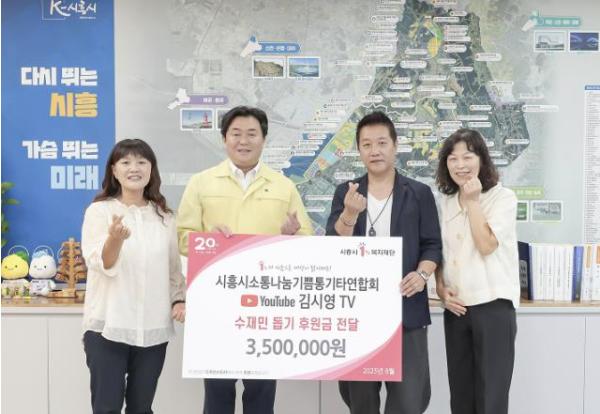 시흥시는 지난 8월 11일 소나기통기타연합회(소통ㆍ나눔ㆍ기쁨)와 유튜브 채널 ‘김시영TV’가 시흥시1%복지재단을 통해 수재민 지원을 위한 후원금 350만 원을 기탁했다고 밝혔다.