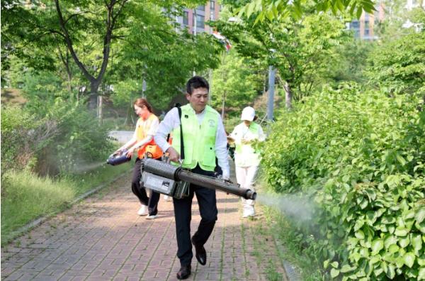 모기 등 위생 해충 활동이 활발한 여름철을 맞아, 김정헌 인천 중구청장이 영종국제도시 주민들과 함께 현장 방역에 발을 벗고 나섰다.