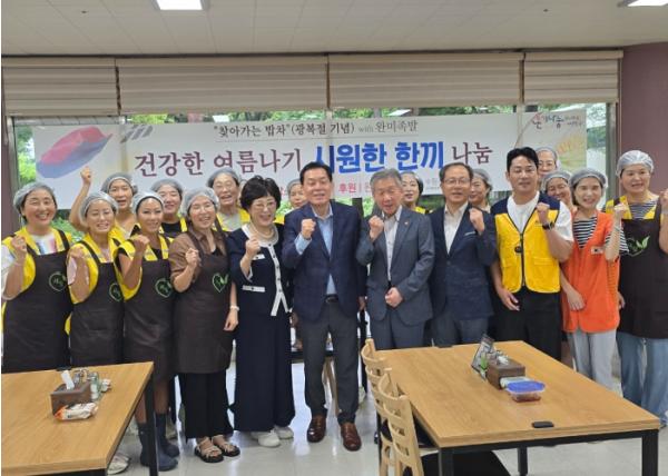 봉사자들은 국가유공자에게 점심으로 콩국수와 완미족발을 급식했다.