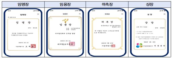 서울시는 신규공무원 및 고위직 승진자, 시민 대상 표창·위촉 등 실물증서 수여의 상징성과 소장가치가 중요한 경우에는 종이증서와 디지털 증서를 병행 발급해 디지털 전환 과정에서의 거부감을 줄이고, 수여 문화의 품격을 유지할 계획이다.