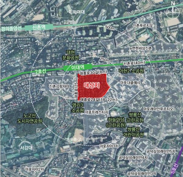 이 지역은 총 1,120세대가 공급되며, 임대주택 258세대가 포함돼 공공성도 확보했다. 지역을 위한 기반시설로는 도로, 공원, 사회복지시설 등이 들어서며, 이대역부터 아현 재정비촉진지구 내 주요 시설을 연결하는 남북간 공공보행통로도 신설된다.