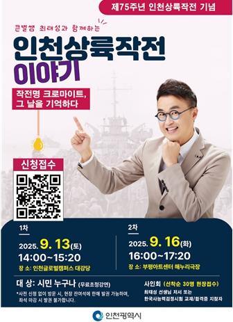 강연은 약 1시간 동안 진행되며, 최태성 강사의 특유의 흡인력 있는 설명을 통해 시민들에게 인천상륙작전의 역사적 의미를 쉽고 깊이 있게 전달할 예정이다.