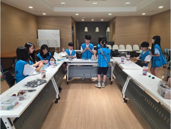 인천연수구자원봉사센터 소속 삼다송 어린이 청소년 봉사단(회장 장은주) 지난 23일 봉사단 30여명이 참여하여 페 페트병 뚜껑을 활용한 업사이클 그립톡 100여개를 직접 제작하는 활동을 진행했다.