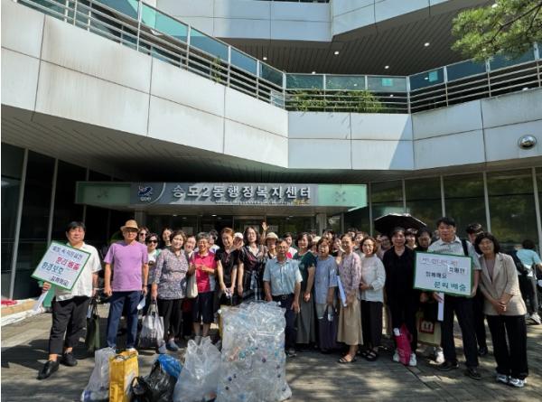 연수구 송도2동 통장자율회(회장 박철수)는 지난 25일 동 행정복지센터에서 ‘친환경 자원순환 나눔 캠페인’을 진행했다.