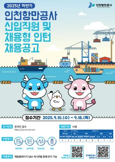 인천항만공사는 전문성과 다양성을 갖춘 인재 확보를 위해 ‘2025년도 하반기 신입직원 및 채용형 인턴’을 채용한다고 3일 밝혔다.