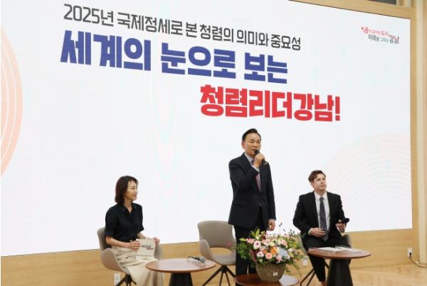 이날 행사에는 정치학자 김지윤 박사와 방송인 크리스 존슨이 연사로 나서, 세계 각국의 청렴 제도와 시민의 역할, 청렴 강남의 국제적 위상 등을 주제로 대화를 나눴다. 두 연사는 글로벌 시각에서 바라본 청렴의 중요성을 쉽게 풀어내며 참가자들의 큰 호응을 얻었다.