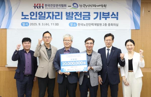 KH한국건강관리협회가 9월 3일 한국노인인력개발에 어르신들의 삶의 질 향상과 건강한 노후 증진을 위한 후원금 2천만 원을 전달했다.