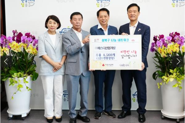 이승로 성북구청장은 “이웃을 위해 따뜻한 나눔을 실천해 주신 ㈜에스디산업개발에 깊이 감사드린다”며 “성북구는 앞으로도 지역사회 나눔문화 확산과 어르신들의 복지 증진을 위해 최선을 다하겠다”고 밝혔다.
