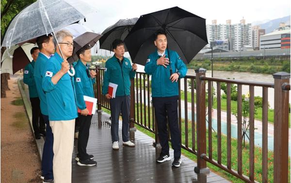 오 구청장은 중랑천변 산책로 등 침수 취약 지역에 대한 시설물 관리 상태를 확인했다.