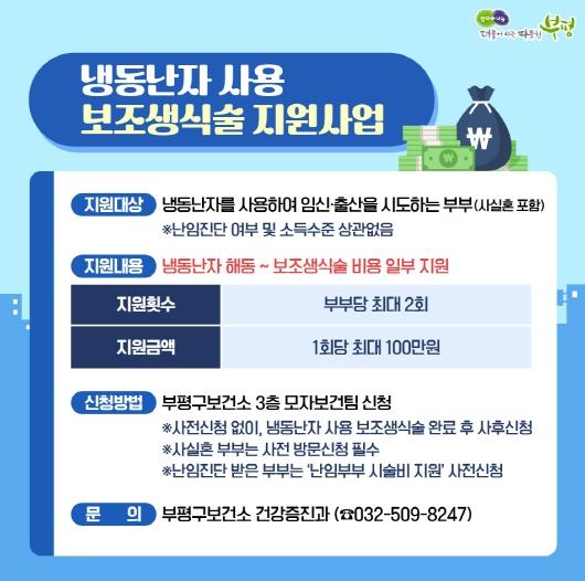 부평구는 아이를 원하는 부부의 임신·출산을 적극적으로 지원하기 위해 ‘냉동 난자 사용 보조생식술 지원사업’을 진행한다고 12일 밝혔다.