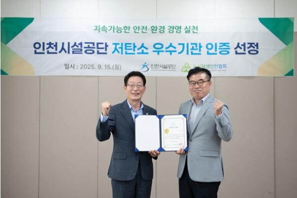 인천시설공단은 15일, 도시재생안전협회(협회장 한제영)로부터 공공부문 저탄소·친환경 경영 선도 노력을 인정받아 ‘저탄소 우수기관 인증’을 획득했다.