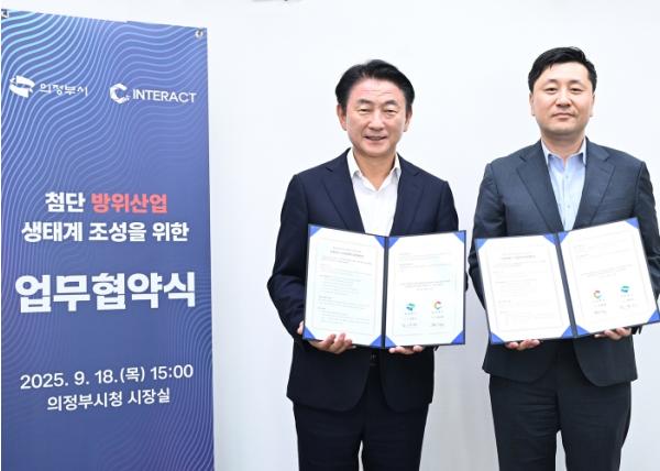 의정부시는 9월 18일 XR(확장현실) 기술 기반 교육훈련 시스템 전문 기업 ㈜인터랙트와 ‘첨단 방위산업 생태계 조성’을 위한 업무협약을 체결했다.