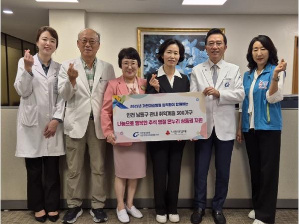 가천대 길병원에서 기탁받은 온누리상품권은 인천사회복지공동모금회를 통해 취약계층과 아동 사례관리대상자 등에 지원될 예정이다.