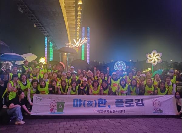 인천 계양구자원봉사센터는 지난 24일 저녁, ‘계양아라온 아트웨이(빛의 거리 3단계)’와 ‘가을꽃 국화축제’가 열리는 현장에서 자원봉사자 74명과 함께 ‘야(夜)한 플로깅’ 봉사활동을 진행했다.