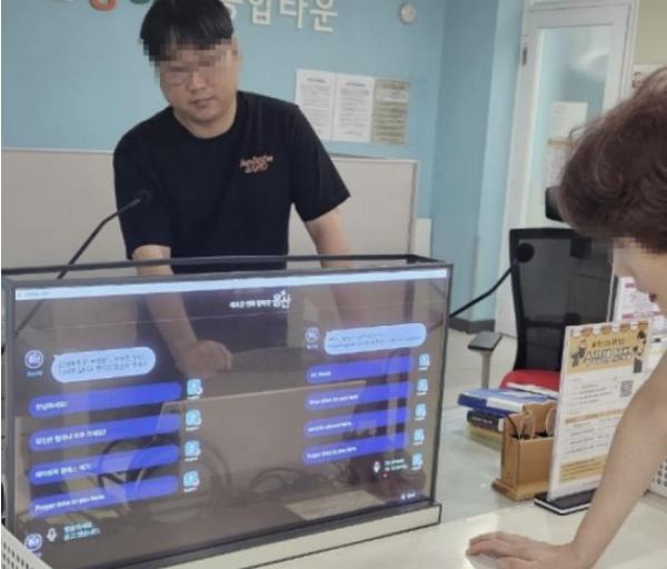 AI 동시통역 시스템은 민원인과 직원이 투명 디스플레이를 마주 보며 대화하는 방식이다. 외국인이 원하는 언어를 선택하고 질문하면 화면에 한국어 번역이 자동 표출되고, 직원이 한국어로 답하면 다시 해당 외국어로 번역돼 실시간으로 화면에 표시된다.