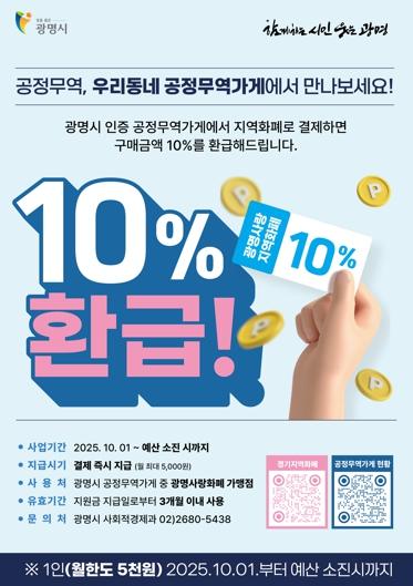 광명시가 공정무역가게에서 광명사랑화폐(지역화폐)로 결제하면 결제금액의 10%를 돌려주는 ‘공정무역 실천 캐시백’ 행사를 진행한다고 9일 밝혔다.