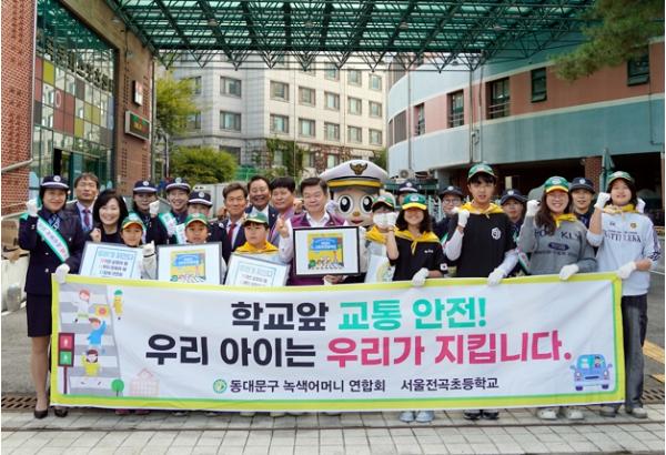 서울 동대문구는 15일 오전 전곡초등학교 정문 어린이보호구역(스쿨존)에서 등굣길 교통안전 캠페인을 실시했다고 밝혔다.
