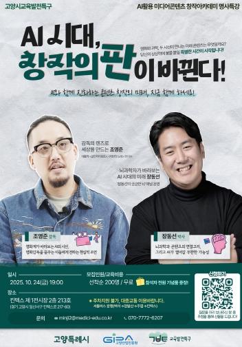 고양산업진흥원은 오는 24일 오후 7시, 킨텍스 제1전시장 213호에서 명사특강 ‘AI시대, 창작의 판이 바뀐다!’를 개최한다.
