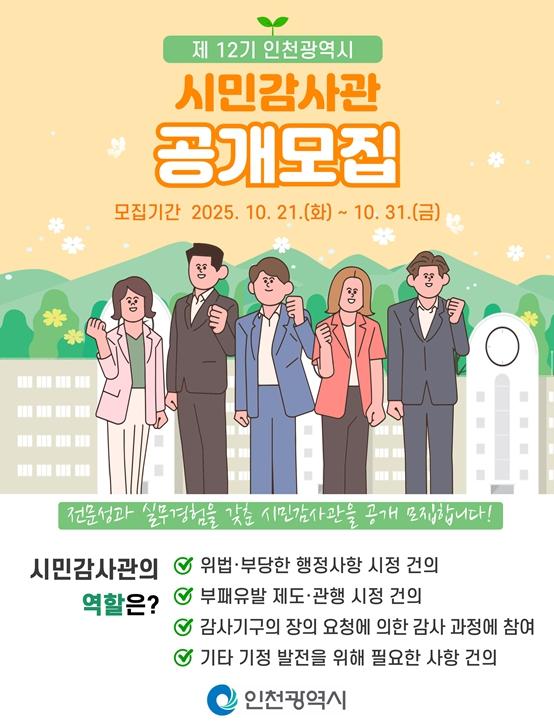 인천시, 제12기 시민감사관 공개 모집… 10월 21일부터 31일까지 접수